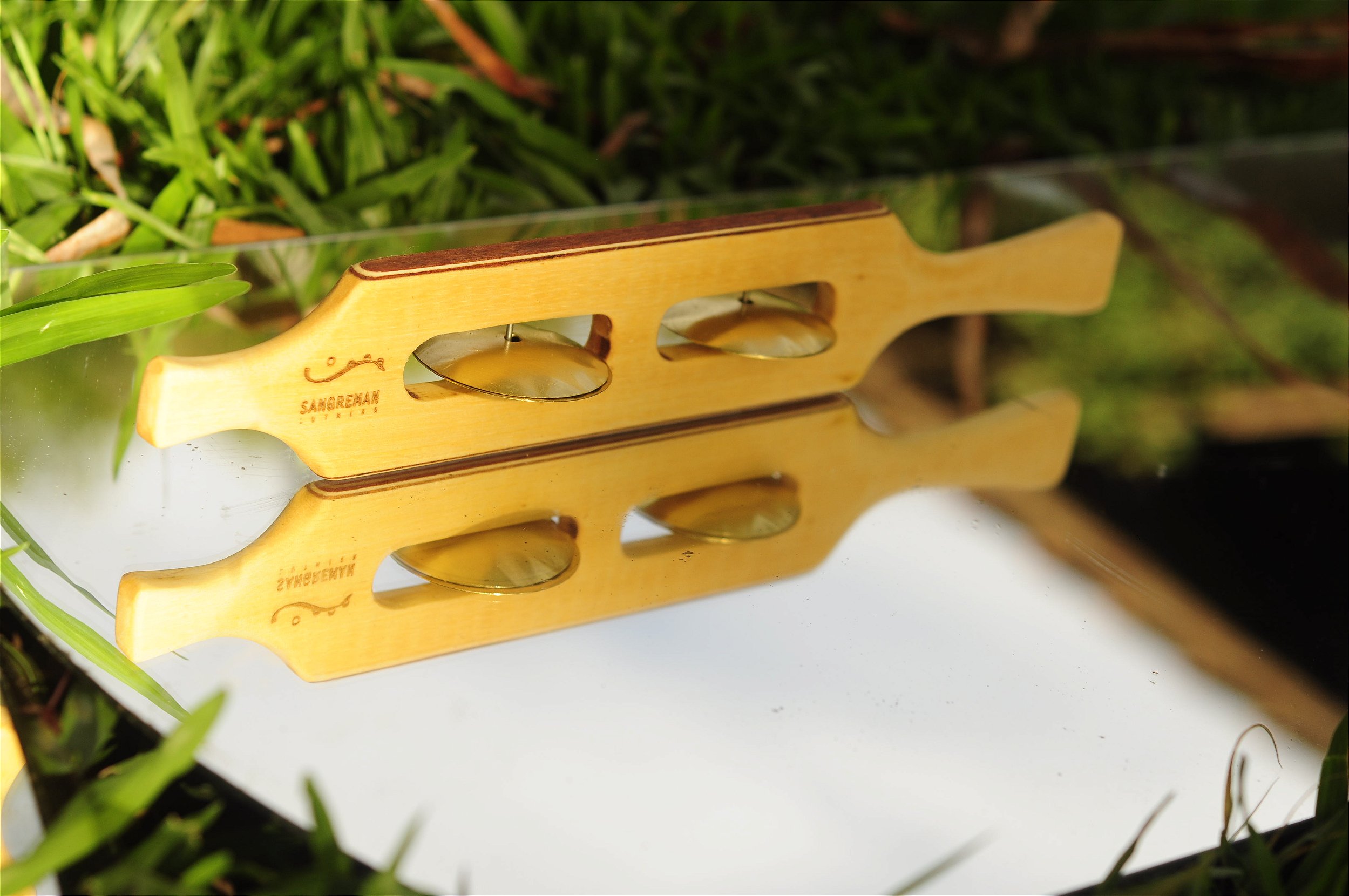 Instrumento criiado por nós da Sangreman Luthier, inspirado nos chocalhos rocar de escolas de samba, mas em uma versão mais intimista, ideal para um som acústico. Timbre seco e controlado. Nesta versão com platinelas de latão.